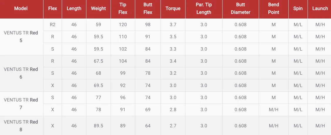 FUJIKURA VENTUS TR RED VELOCORE SHAFT