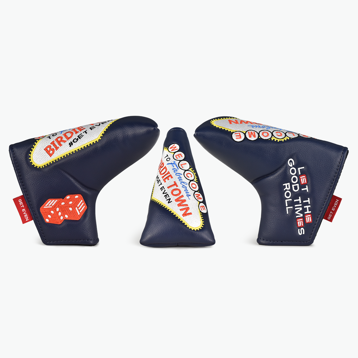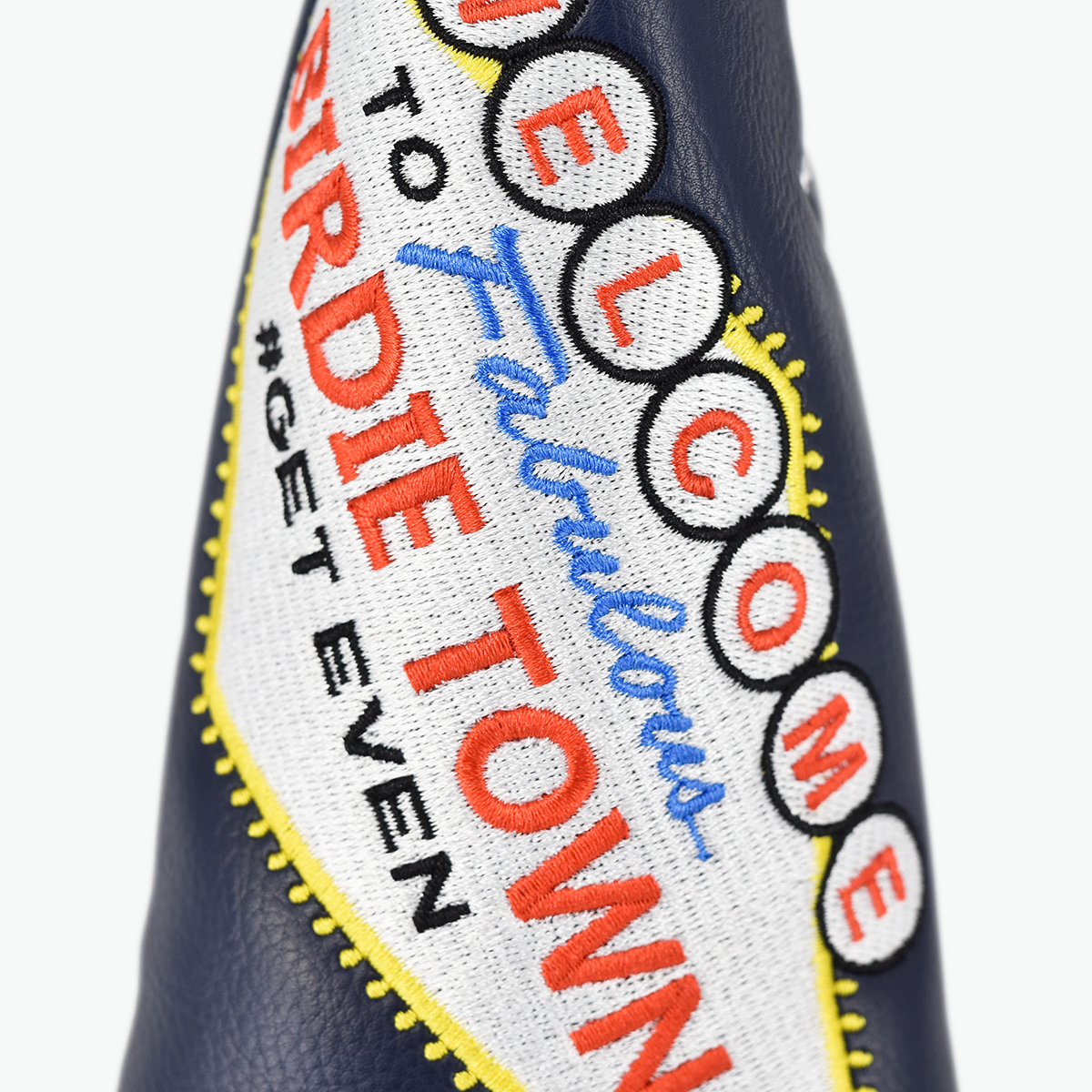This fully-embroidered putter cover features the unique Evnroll Birdie Town design. Including a premium leatherette exterior, double magnet closure and soft interior lining to protect your Evnroll putter.