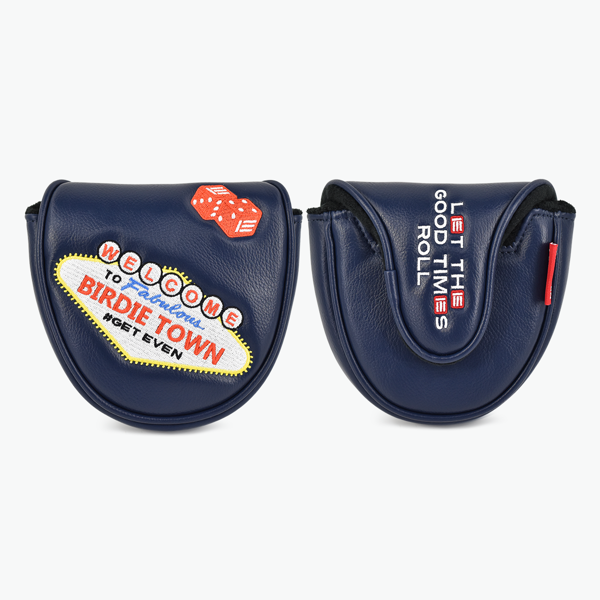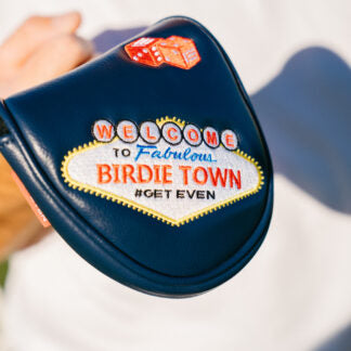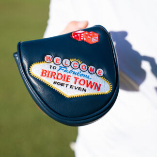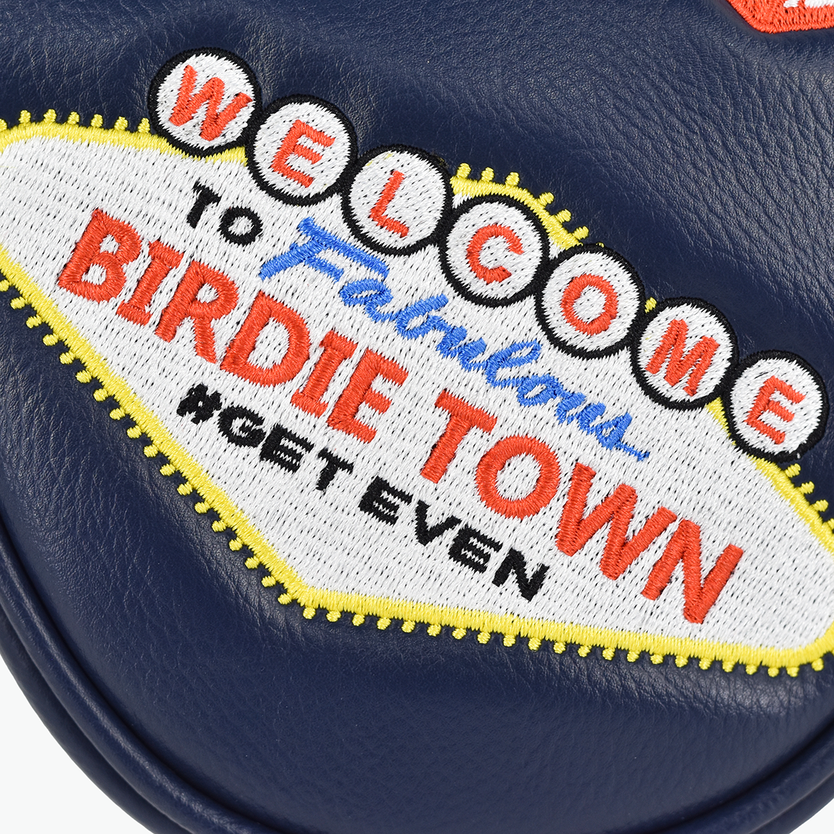 This fully-embroidered mallet putter cover features premium leatherette material with the unique Evnroll Birdie Town design. Including a high-quality fur lined interior that allows for full protection of your Evnroll putter.
